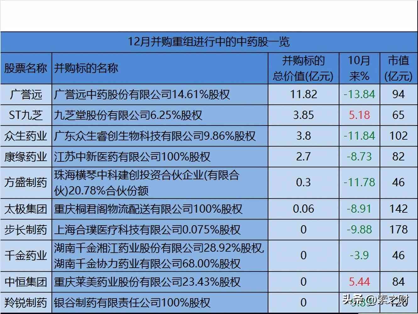 中药行业最新并购汇总:12月10家并购重组中,值得重点关注!