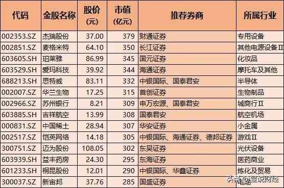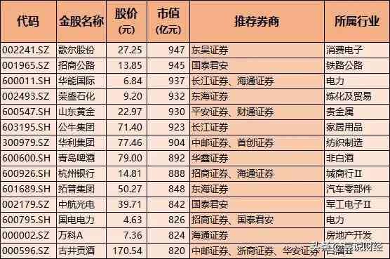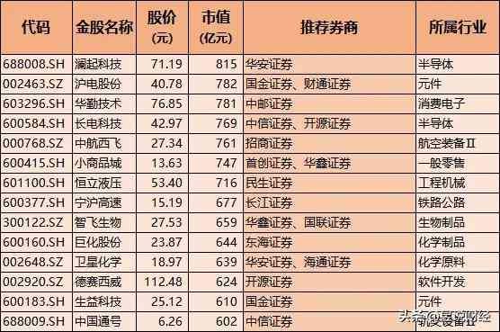 1月,各大券商推荐的金股出炉,包含通信、半导体、医药、消费电子、软件、计算机设备、家电、工业金属、自动化设备等行业龙头。下面,整理了市值靠前的券商金股。