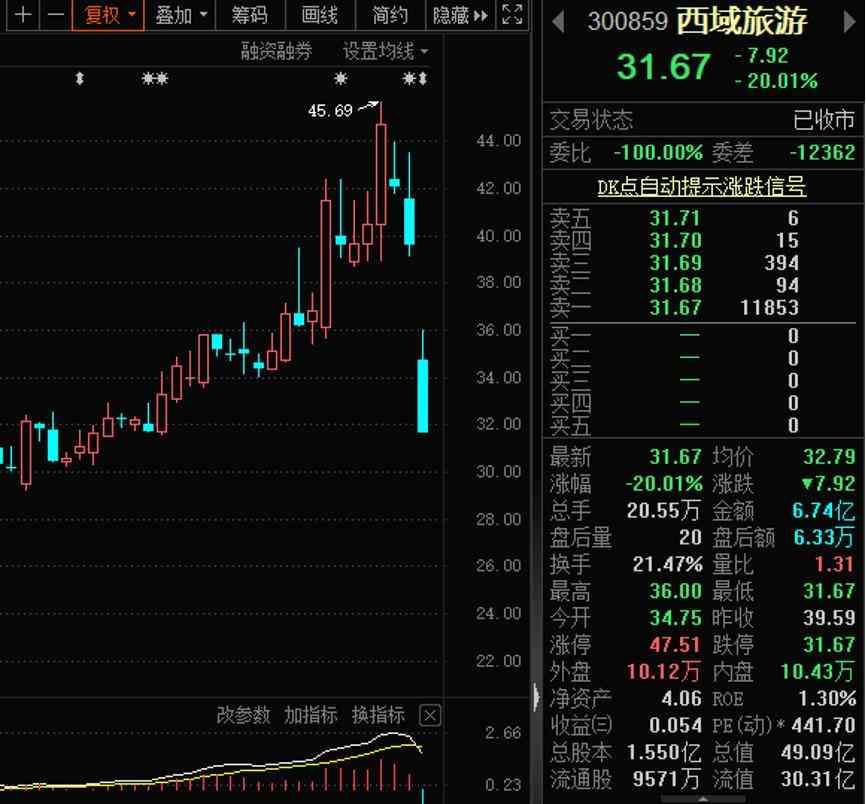 西域旅游周一放量大跌,全天成交6.74亿元。昨日晚间,公司发布关于股票可能被实施退市风险警示的第三次提示性公告,由于预计公司2022年度经审计的净利润(扣除非经常性损益前后孰低)为负值且营业收入低于1亿元。根据《深圳证券交易所创业板股票上市规则》的相关规定,在公司2022年年度报告披露后,公司股票交易可能被实施退市风险警示(股票简称前冠以“ST”字样)。