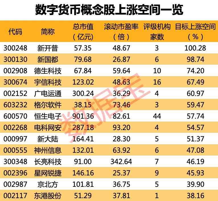 根据机构评级的目标上涨空间来看,14股预测的上涨空间超30%;其中新开普股价有望翻倍,新国都、德生科技、恒生电子等8股预计上涨空间超50%。