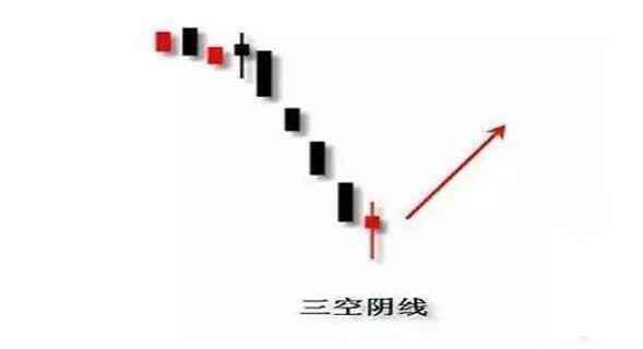 当炒股出现连续三条跳空下降阴线,则为强烈的介入信号,后期即将开始反弹。