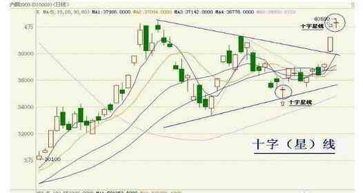 在股市大跌行情中,向下跳空出现十字星,隔日又向上跳空拉出一根大阳线,暗示着筑底已经完成,行情即将大涨,为介入信号。另外,这也属于是“早晨之星”的K线特征。