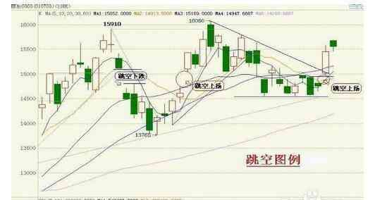 ③在期市大跌的行情中,向下跳空出现十字星,暗示探底基本完成,为反弹之兆。
