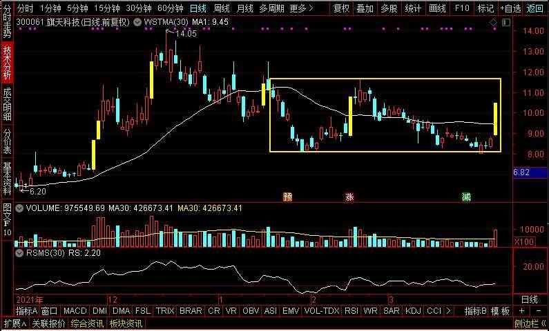从价格形态来看,旗天科技,是构筑出了一个比较明显的矩形形态。