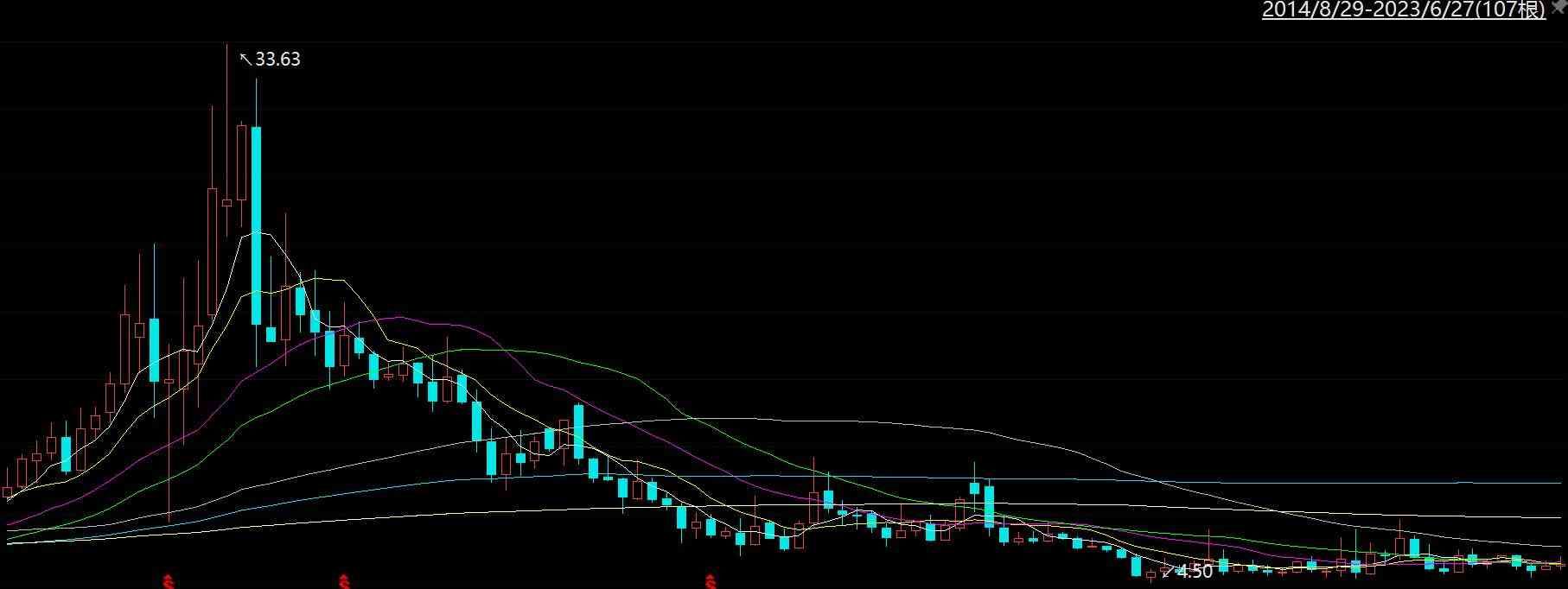 置于二级市场,龙头股份股价表现同样低迷已久。东方财富Choice显示,该股自2015年底触及高点33.63元/股后,便开启了一路“跌跌不休”。截至6月27日,该股报收于5.46元/股,总市值23.2亿元,较高点已跌去超8成。