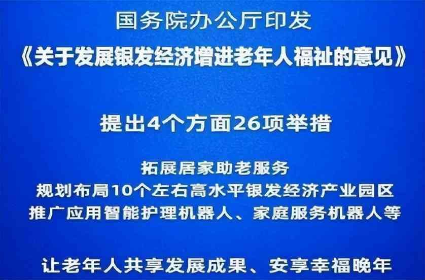 昨晚,国务院办公厅印发《关于发展银发经济增进老年人福祉的意见》,提出4 个方面 26 项举措。这是我国首个以“银发经济”命名的政策文件,未来,国家将着力培育高精尖产品和高品质服务模式,让老年人共享发展成果,安享幸福晚年。