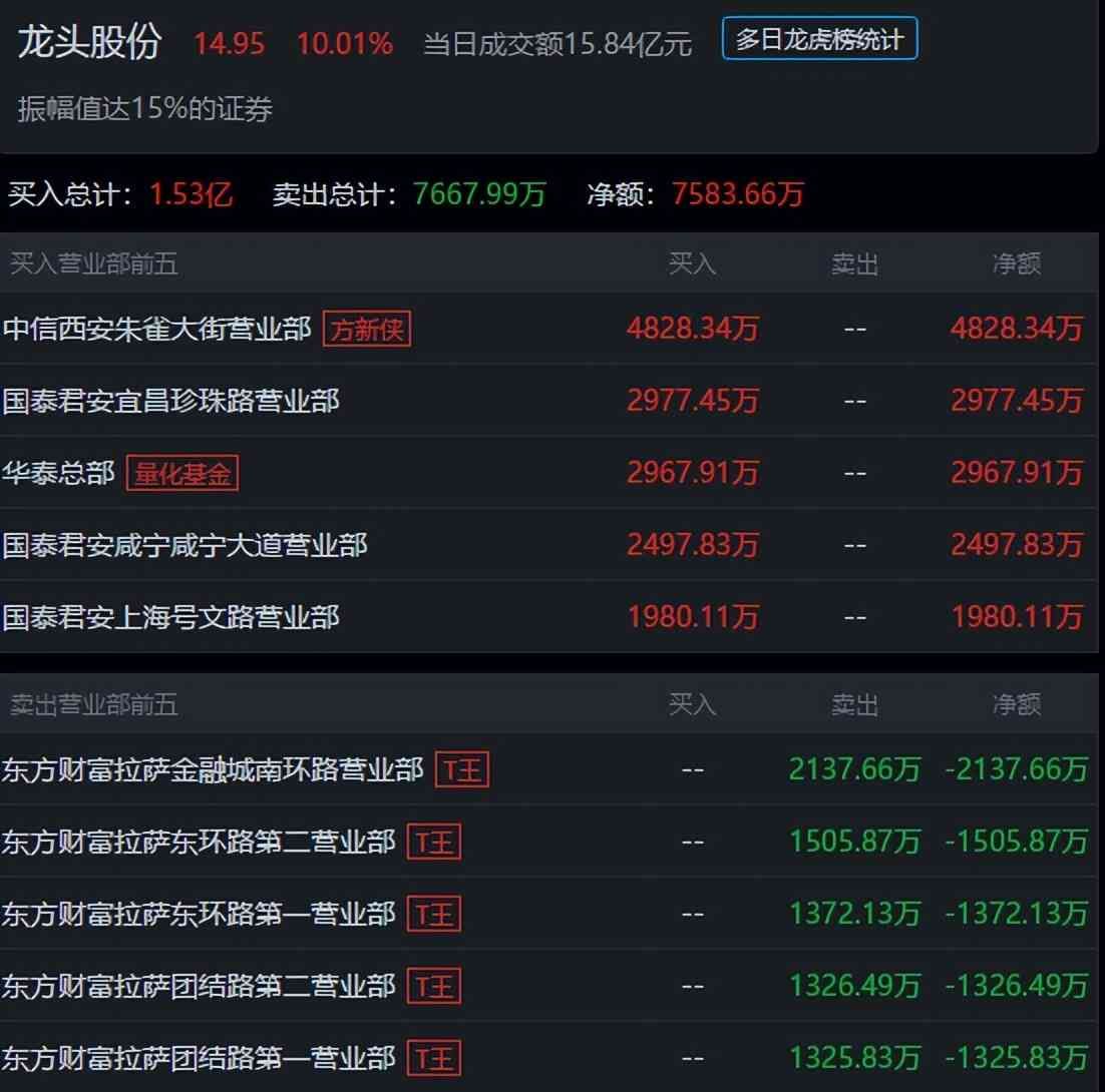 龙头股份股票行情分析最新消息,游资解析