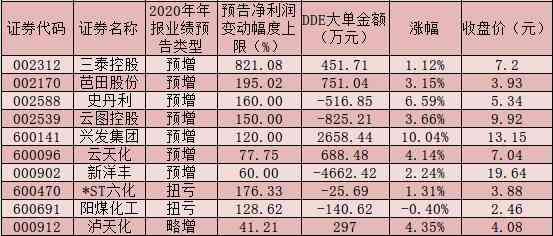值得一提的是,当前市场做多资金也开始纷纷涌入相关概念股进行布局。统计显示,2月8日,板块内共有11只概念股呈现大单资金净流入态势,其中,兴发集团、芭田股份、云天化、三泰控股、泸天化等5只年报预喜股备受大单资金的青睐,合计吸金4846.67万元。