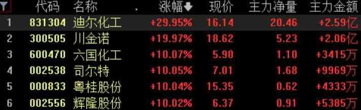 迪尔化工、川金诺、六国化工、司尔特等多股涨停。