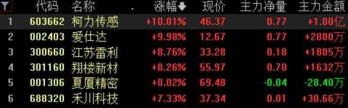 柯力传感、爱仕达涨停,江苏雷利、禾川科技等跟涨。