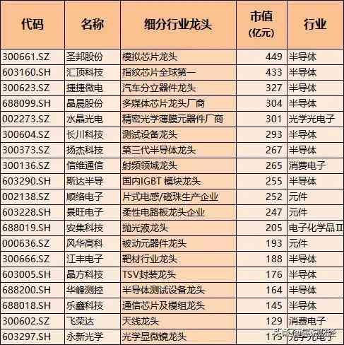 包含:圣邦股份(国内模拟芯片龙头,拥有52余款产品)、汇顶科技(指纹识别、触控等领域具有龙头地位,社保基金重仓)、长川科技(国内第一、全球第六的半导体测试设备企业,国家大基金重仓,险资重仓)、信维通信(移动通信天线领域龙头企业,社保基金重仓,外资安耐德重仓)、斯达半导、顺络电子等。