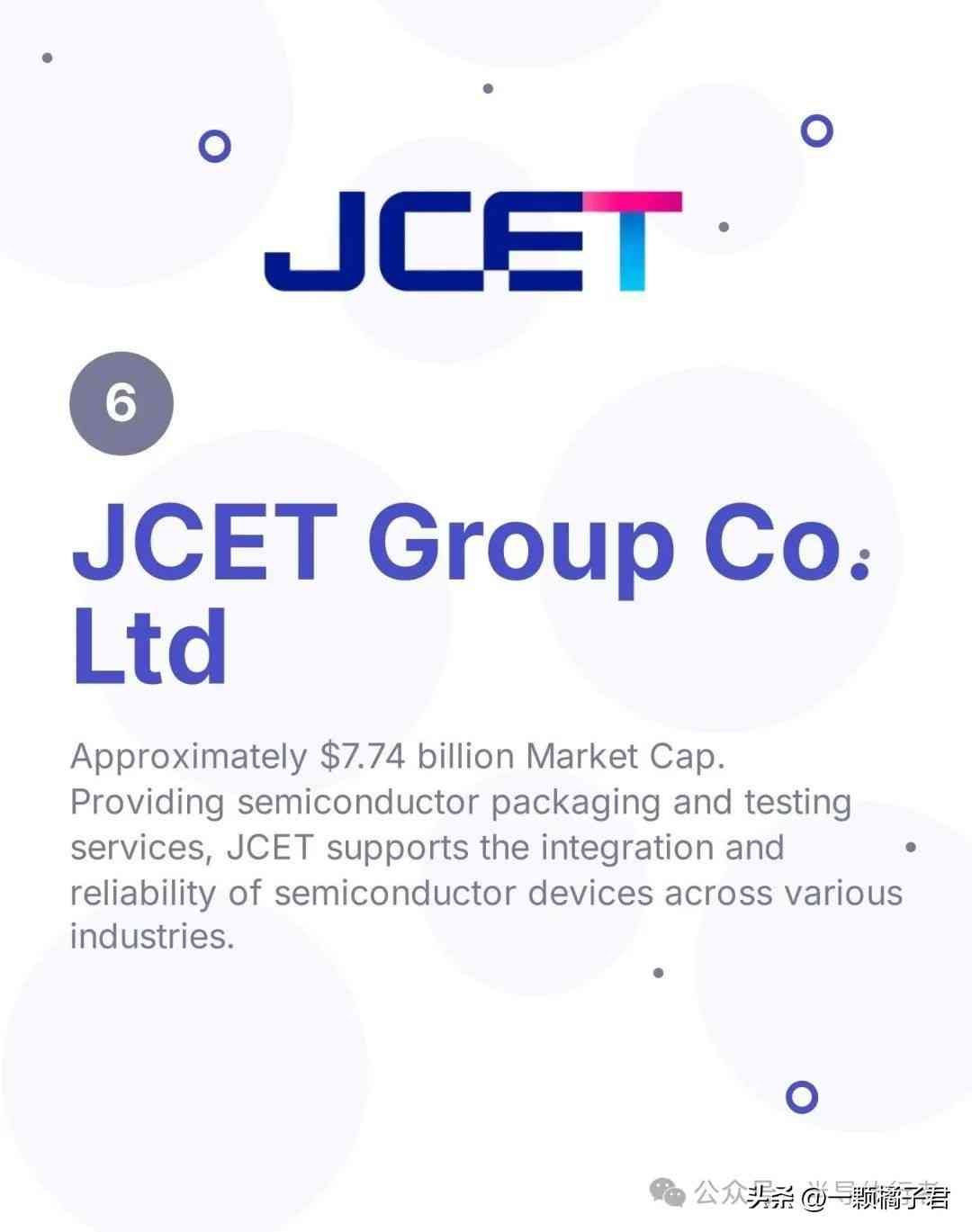 中国半导体封测的龙头企业,给客户提供全方位的封测服务。