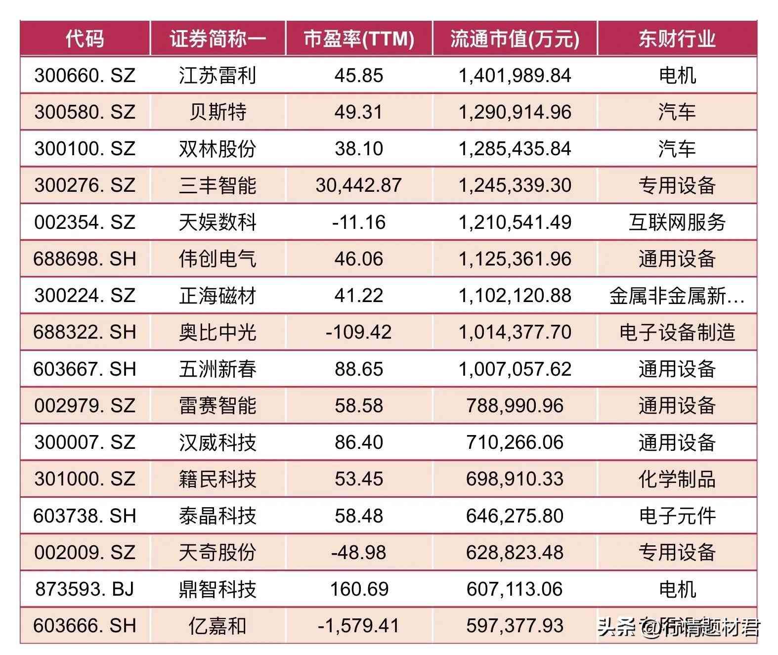 江苏雷利(电机)、贝斯特(汽车)、双林股份(汽车)、三丰智能(专用设备)、天娱数科(互联网服务)、伟创电气(通用设备)、正海磁材(金属非金属)、奥比中光(电子设备制造)、五洲新春(通用设备)、雷赛智能(通用设备)、汉威科技(通用设备)、籍民科技(化学制品)、泰晶科技(电子元件)、天奇股份(专用设备)、鼎智科技(电机)、亿嘉和(专用设备)