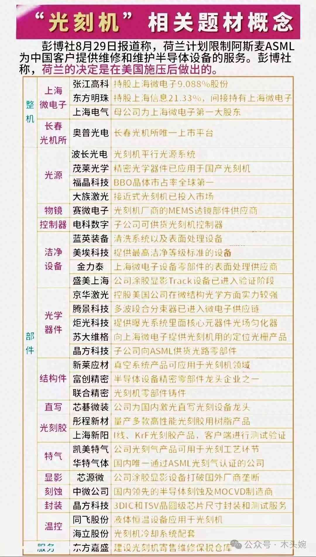 国资光刻机概念:张江高科、奥普光电、福晶科技等等