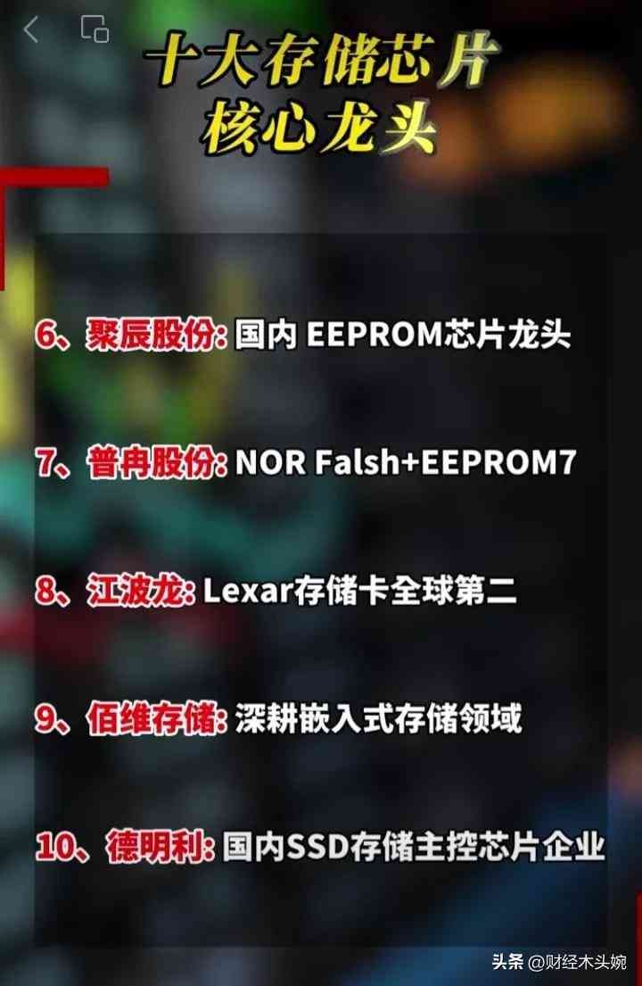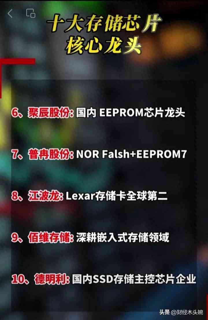 (5)十大储存芯片龙头盘点!深科技、北京君正、佰维存储等等
