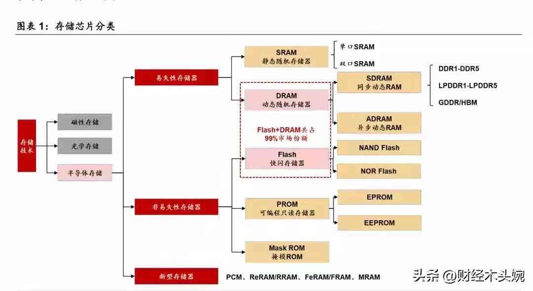 (2)储存芯片的分类梳理,储存芯片细分类别一图梳理: