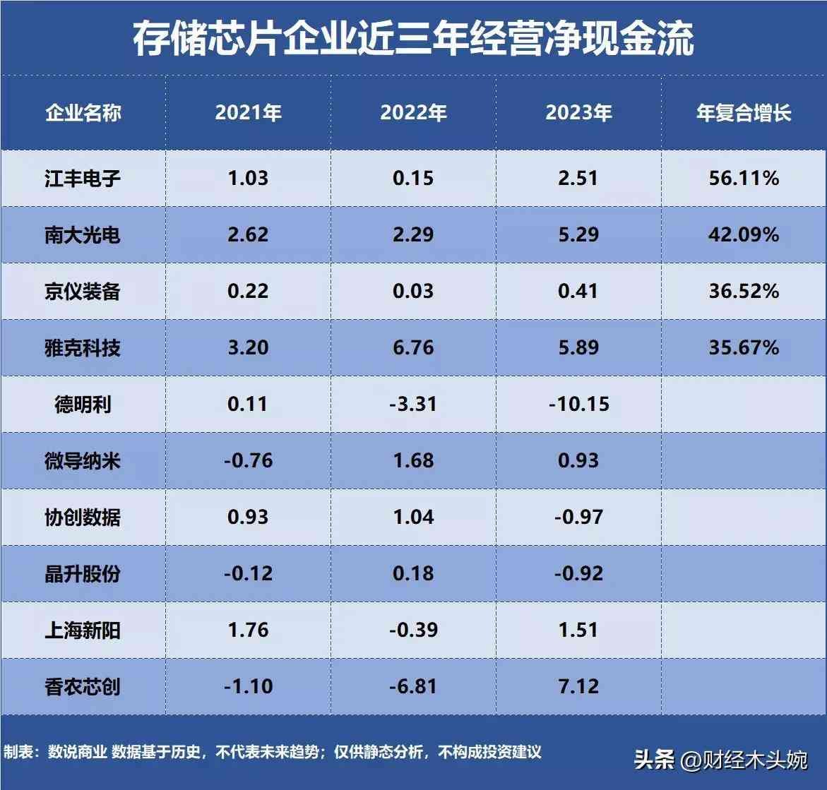 (4)储存芯片近三年盈利能力前十名单!(营收排名、净利润排名、现金流排名)