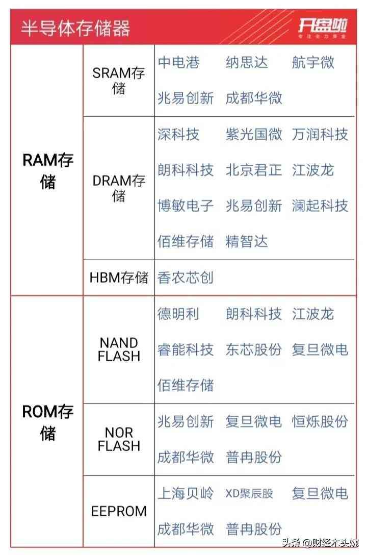 文章内容:储存芯片分类梳理、储存芯片十大龙头盘点、储存芯片盈利能力前十名单、国产储存芯片核心企业有哪些?