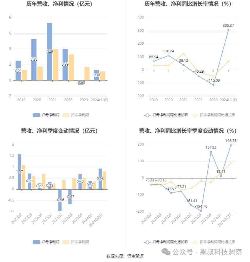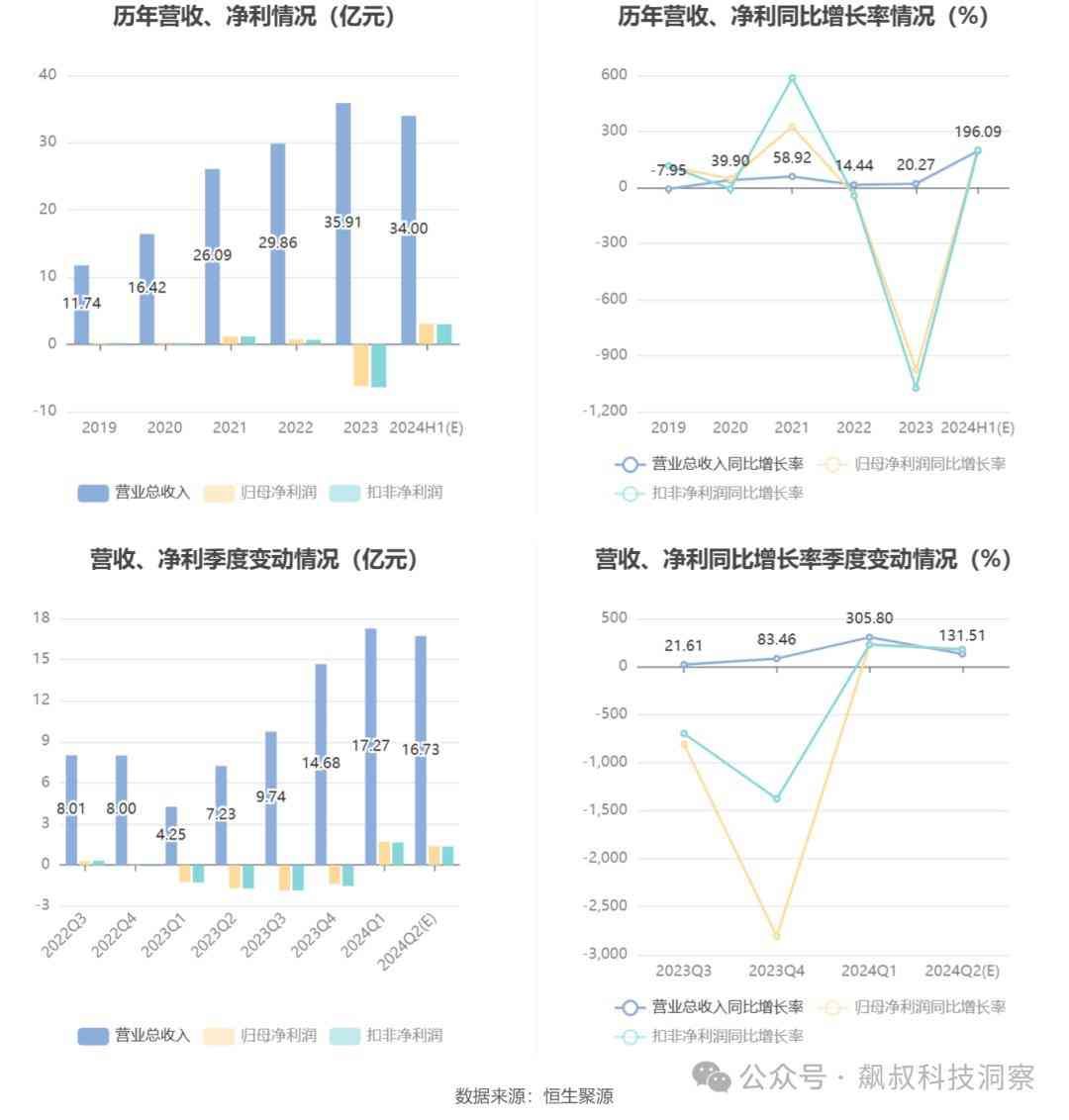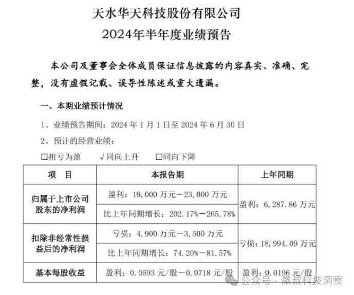 业绩回升,主要是2024年上半年,在相关电子终端产品需求回暖的影响下,集成电路景气度回升。华天科技上半年订单增加,产能利用率提高,营业收入较去年同期有显著增长,从而使得公司经营业绩大幅提高。
