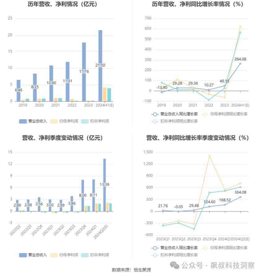 7月9日德明利公告,预计2024年上半年净利润为3.8亿元至4.5亿元,同比扭亏为盈,上年同期亏损7941.65万元。营业收入预计为20亿元至23亿元,同比增长238.68%至289.48%。