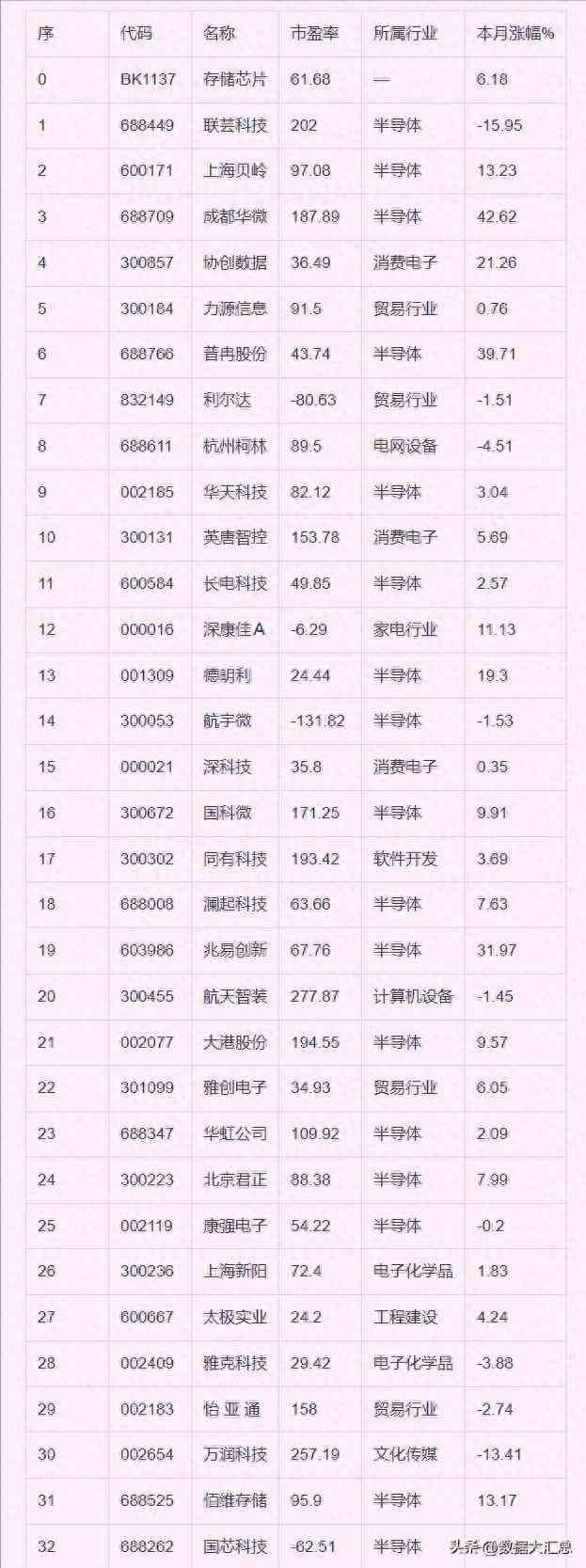 存储芯片股票一览表最新,存储芯片念股,十二月以来涨跌幅排名: