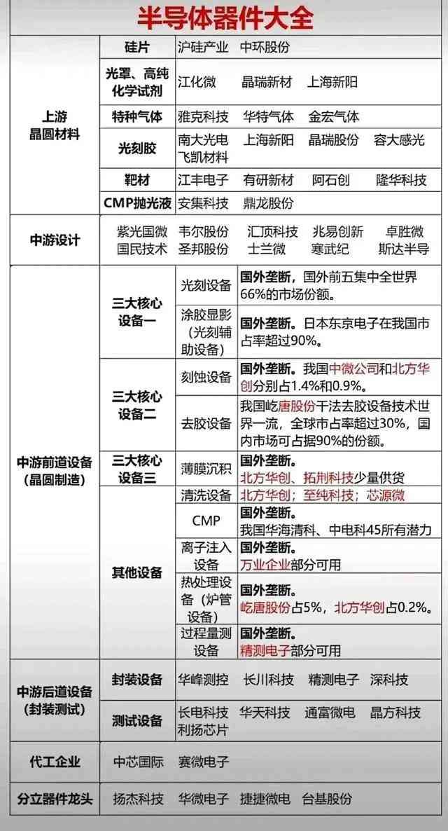 半导体产业链龙头股大集合!(全产业链细分龙头梳理)