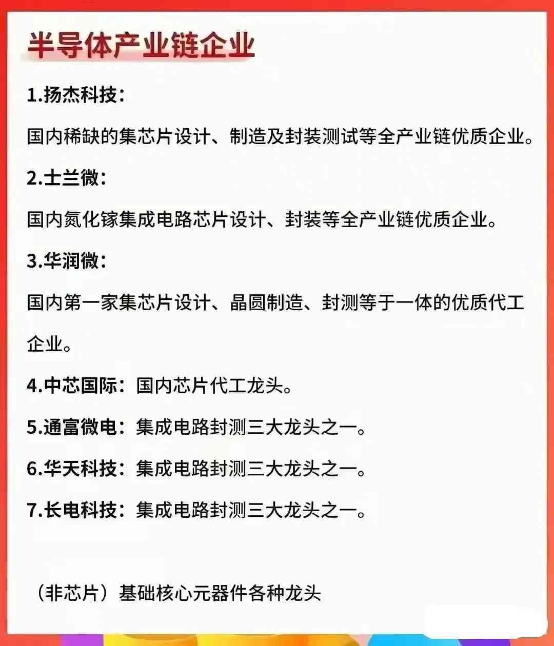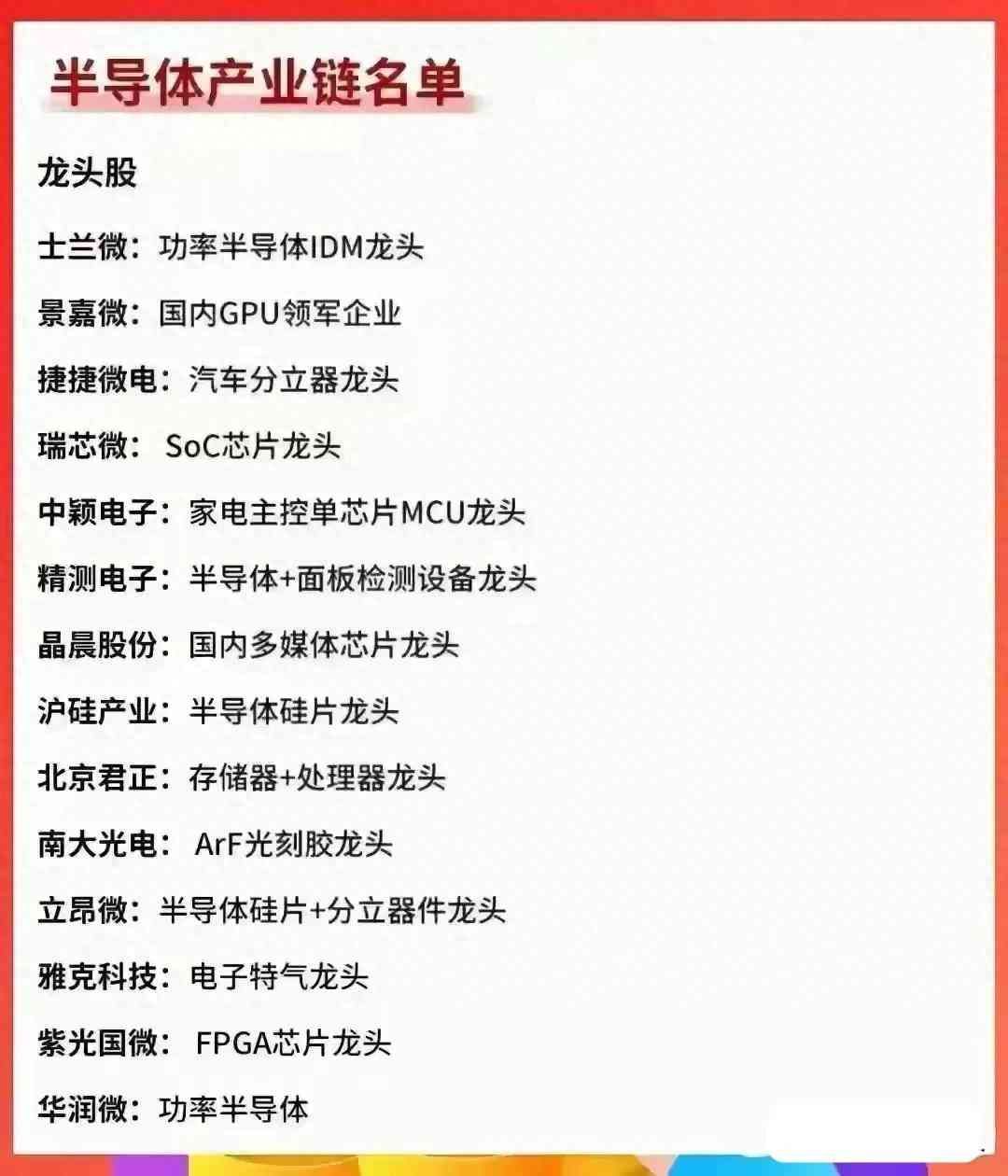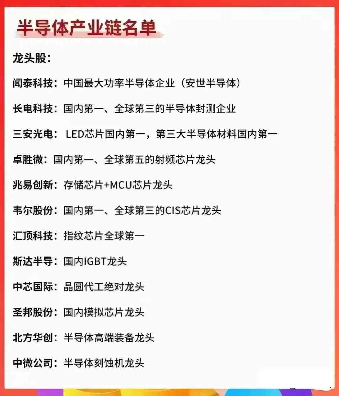 半导体芯片产业链龙头名单