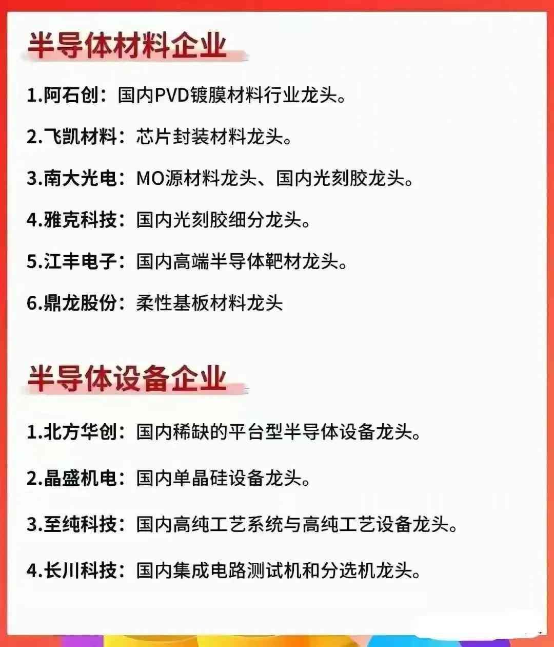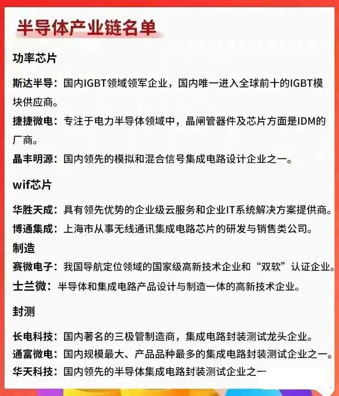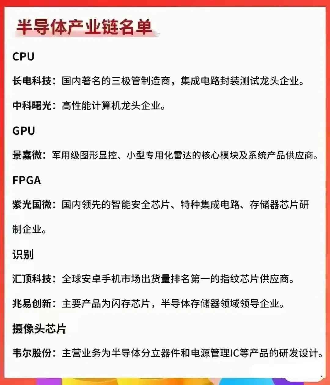半导体芯片产业链龙头名单