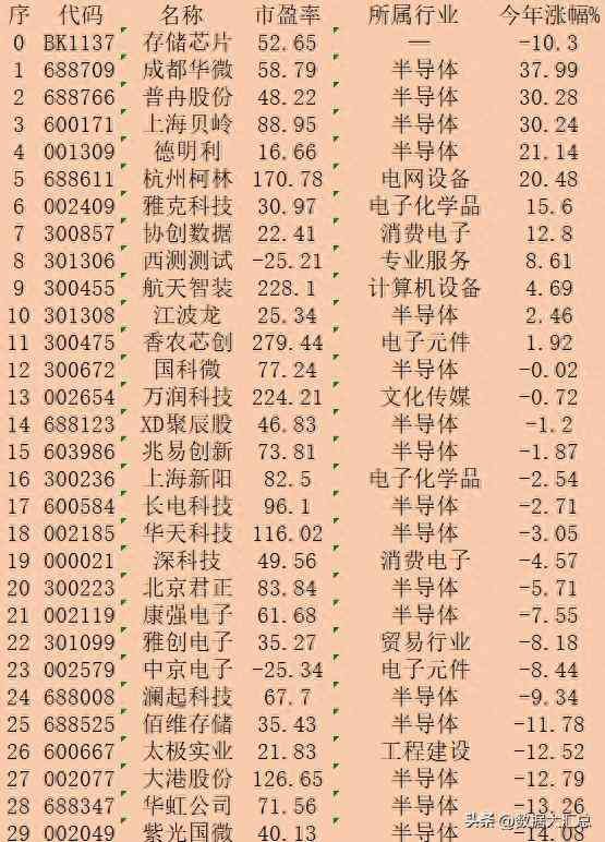 存储芯片股票一览表最新消息,存储芯片概念股,今年以来涨跌幅排名: