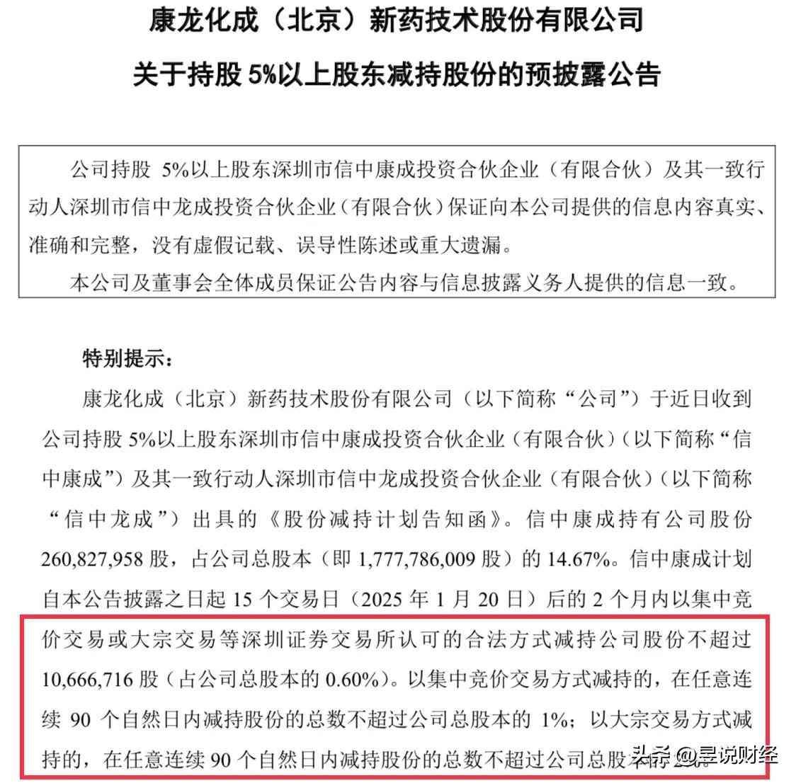 康龙化成是国内医疗研发外包企业,中外合资。康龙化成的大股东信中康成及其一致行动人减持1067万股,涉及金额接近3亿元。