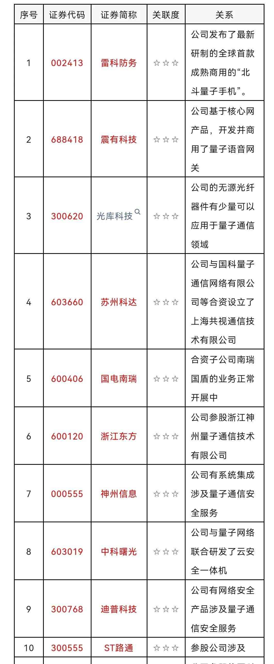 国盾量子、神州信息、光迅科技、苏州科达