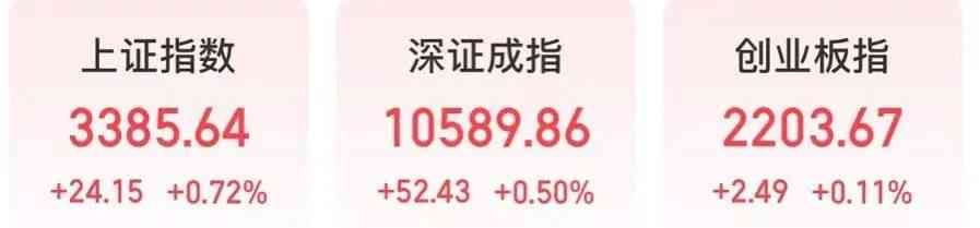 截至上午收盘,上证指数上涨0.72%,深证成指上涨0.5%,创业板指上涨0.11%。