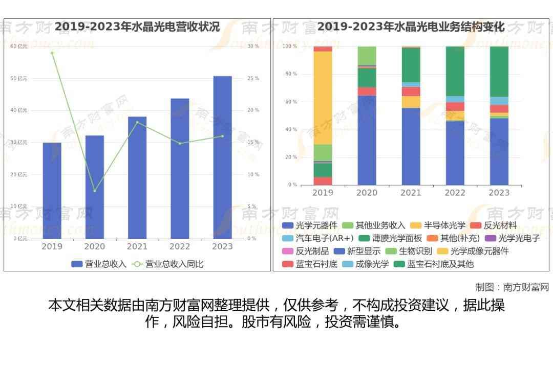 水晶光电于28年9月19日在深圳证券交易所上市,公司主营业务为专业从事光学影像、薄膜光学面板、汽车电子(AR+)、反光材料等领域相关产品的研发、生产和销售。
