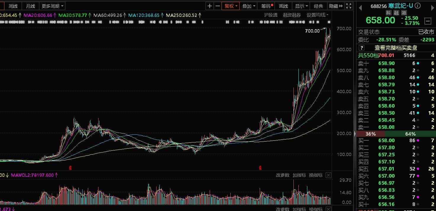 寒武纪以387%的涨幅成为2024年度股王,公司总市值超过27亿,658元的股价仅次于贵州茅台。自2023年初AI大风起时,至今近两年的时间里,公司股价涨幅已经超过10倍。公司成立于2016年,2020年中登入科创板,思元系列工智能芯片是投资者重点跟踪关注的产品。