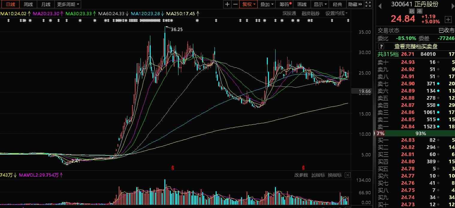 从个股涨幅角度来看,寒武纪以387%涨幅夺得今年股王称号,总市值近28亿,正丹股份(375%)、汇金科技(367%)分列二三位。寒武纪和汇金科技盘中均有不小波动,其年度涨幅多次交替领先,直至尾盘方才决出胜负。最后十多分钟,汇金科技股价大幅跳水,不仅将股王称号让给寒武纪,同时也被今日上涨的正丹股份反超。