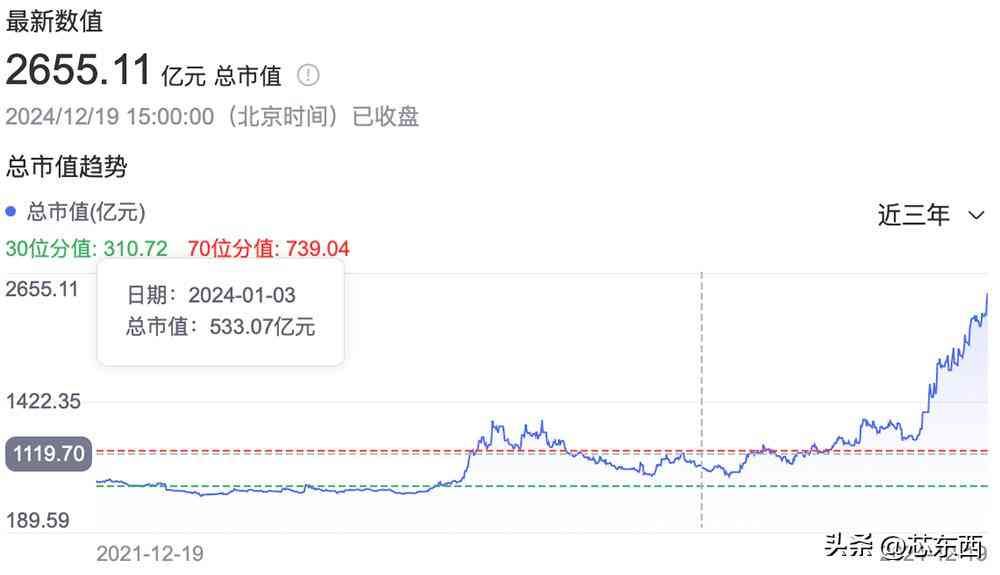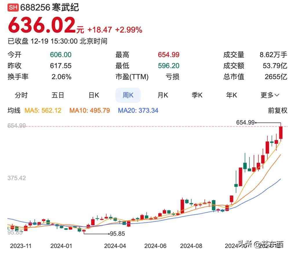 ▲寒武纪2024年股价一路飙涨,总市值超过26亿元