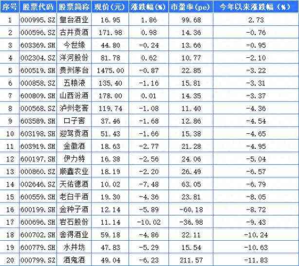 白酒股票有哪些公司,白酒A股今年只有1家上涨 可等待板块企稳再谋其行