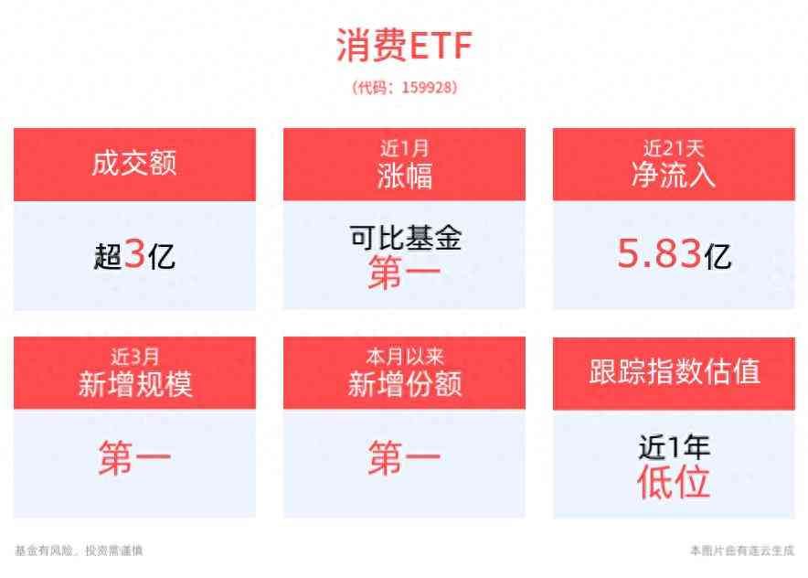 风险提示:基金有风险,投资需谨慎。投资人应当阅读《基金合同》《招募说明书》《产品资料概要》等法律文件,了解基金的风险收益特征,特别是特有风险,并根据自身投资目的、投资经验、资产状况等判断是否和自身风险承受能力相适应。基金管理人承诺以诚实信用、谨慎尽责的原则管理和运用基金资产,但不保证基金一定盈利或本金不受损失。消费ETF(159928)属于较高风险等级(R4)产品,适合经客户风险等级测评后结果为进取型(C4)及以上的投资者。文中提及个股仅为指数成份股客观展示列举,本文出现信息只作为参考,投资人须对任何自主决定的投资行为负责。本文中的任何观点、分析及预测不构成对阅读者任何形式的投资建议。