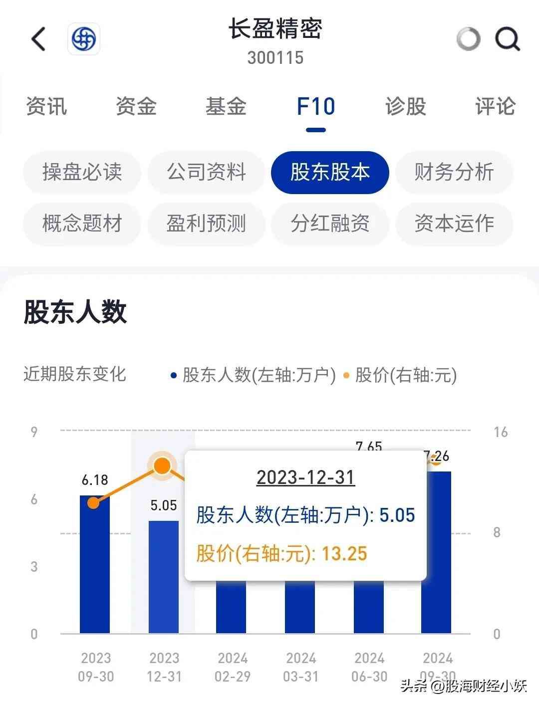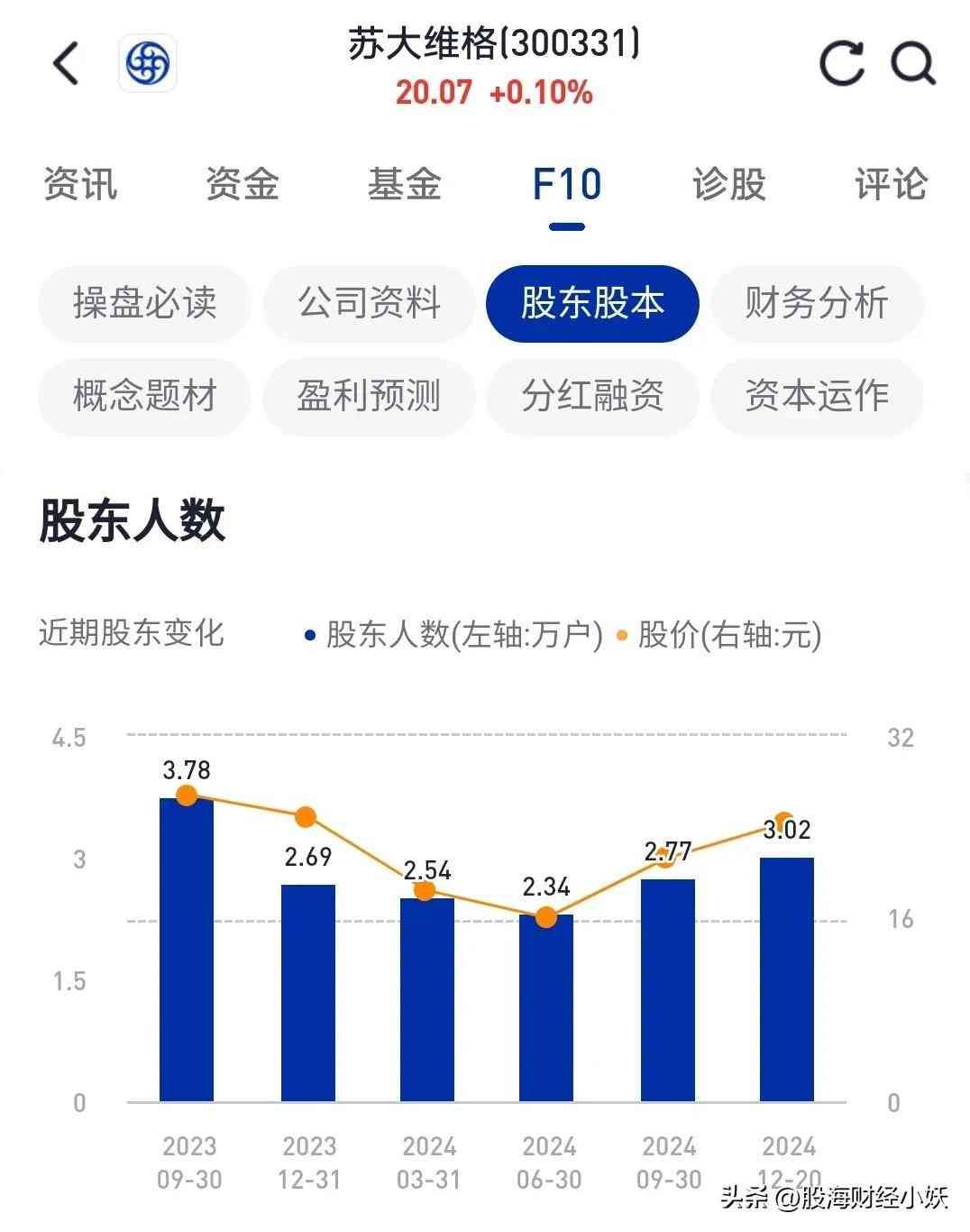股东人数:10万+,最近增长