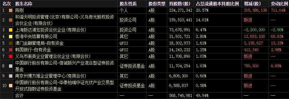 一季度末,爱旭股份获北上资金大幅度增持1265.31万股,最新持股3193.17万股,占流通股2.8%,为公司第四大流通股股东;QFII持有爱旭股份、TCL中环、宏发股份、金盘科技、迈为股份、斯达半导和东微半导等7股,其中爱旭股份获澳门金融管理局、韩国银行增持213.86万股、41.23万股,最新持仓分别为1830.3万股、1424.32万股,持股比例占流通股1.61%、1.25%。