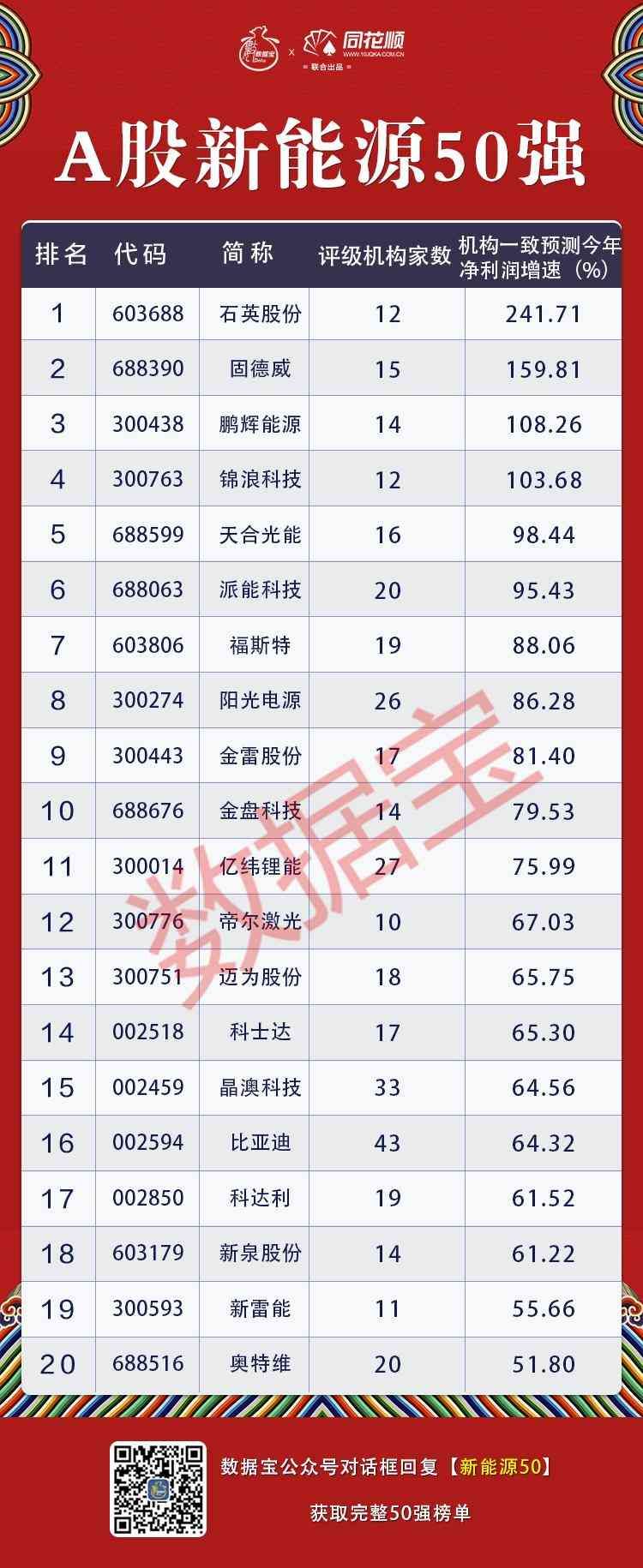 新能源汽车股票前十名a股有哪些,A股新能源50强出炉