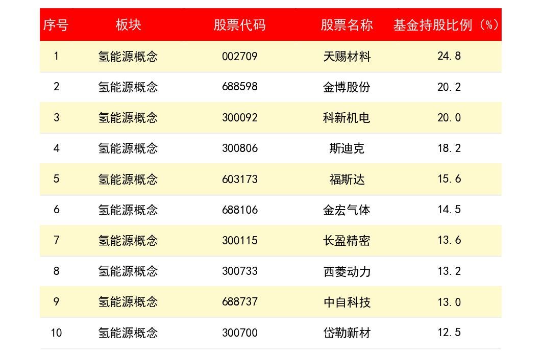维度十四:氢能源概念板块公募基金持仓金额排名