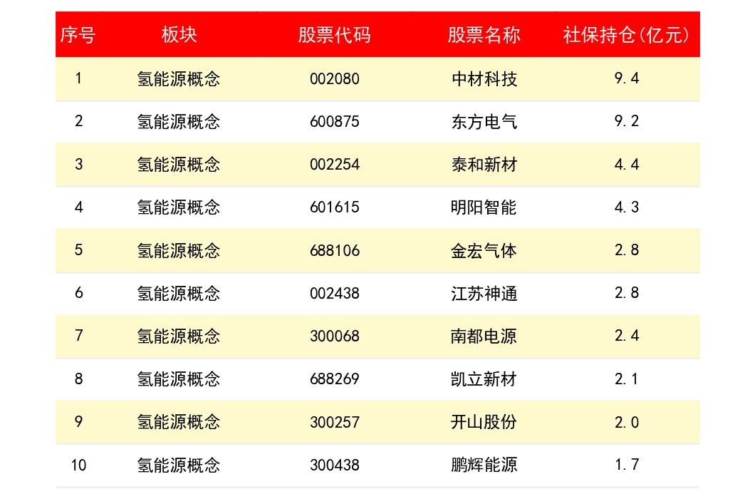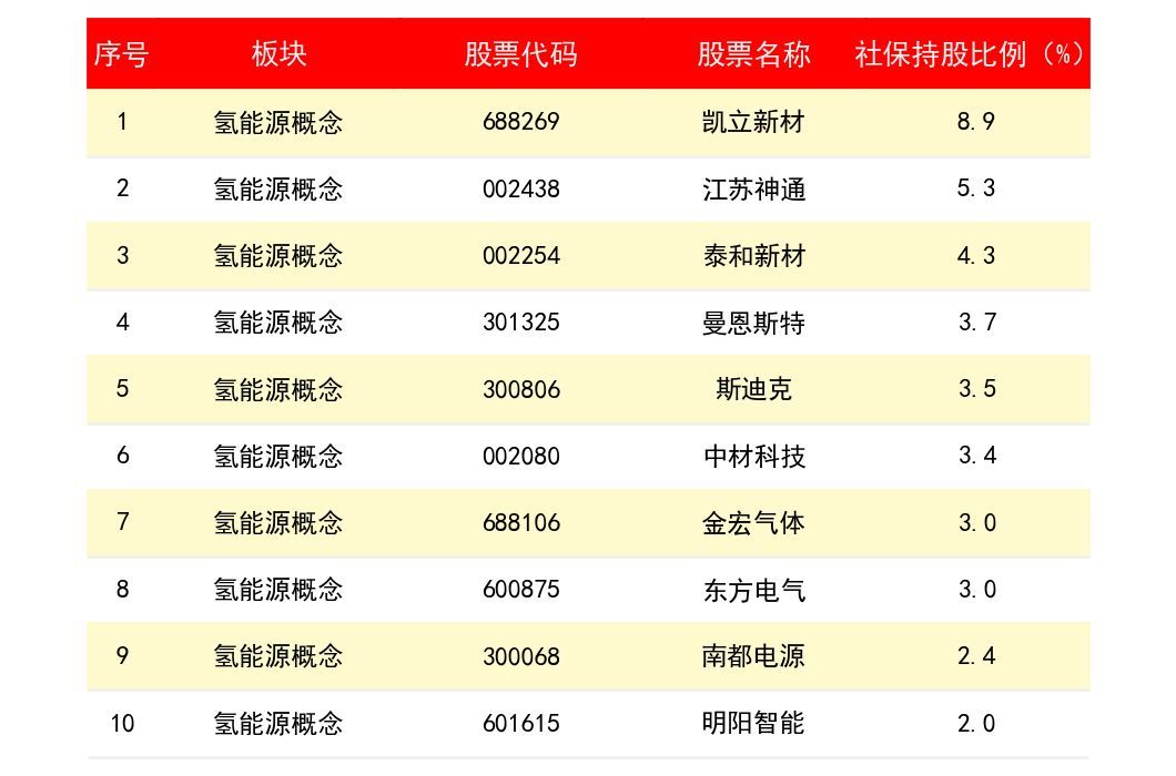 从社保基金持仓的情况来看,氢能源概念上市公司受稳健投资资金看好的有哪些?社保基金持仓的情况如何?
