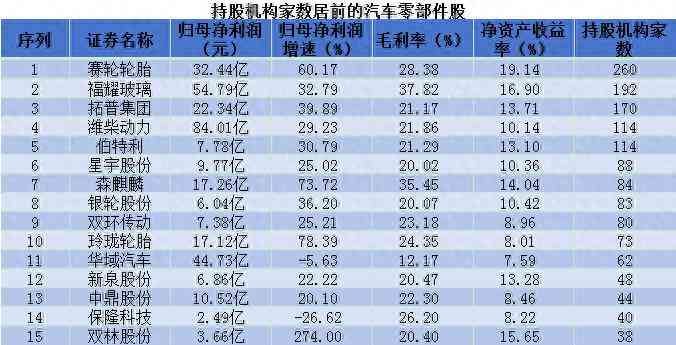 其中,赛轮轮胎以260家的持股机构家数位居行业第一,福耀玻璃和拓普集团分别以192家和170家的数量紧随其后,凸显了这些汽车零部件企业在资本市场上的吸引力。