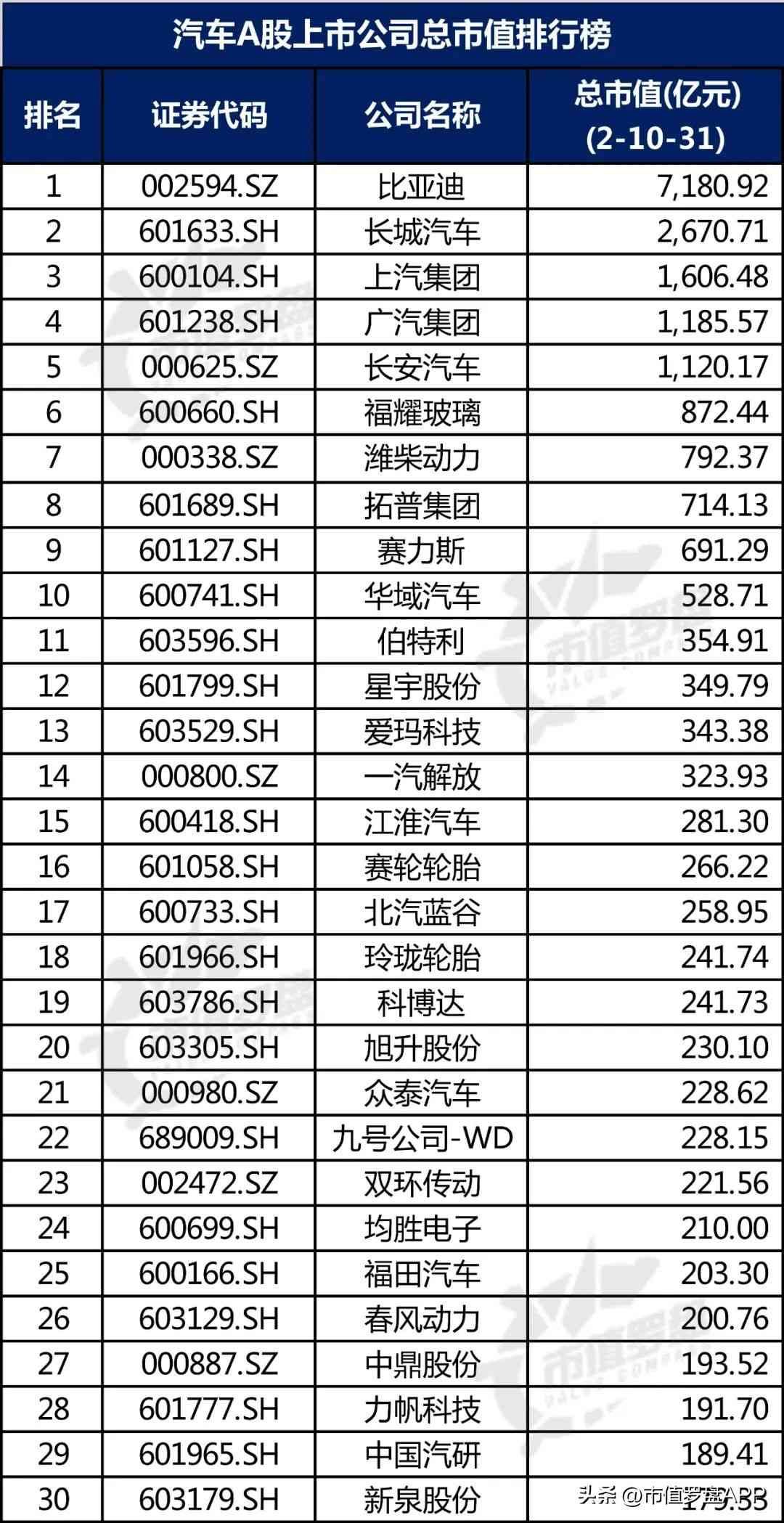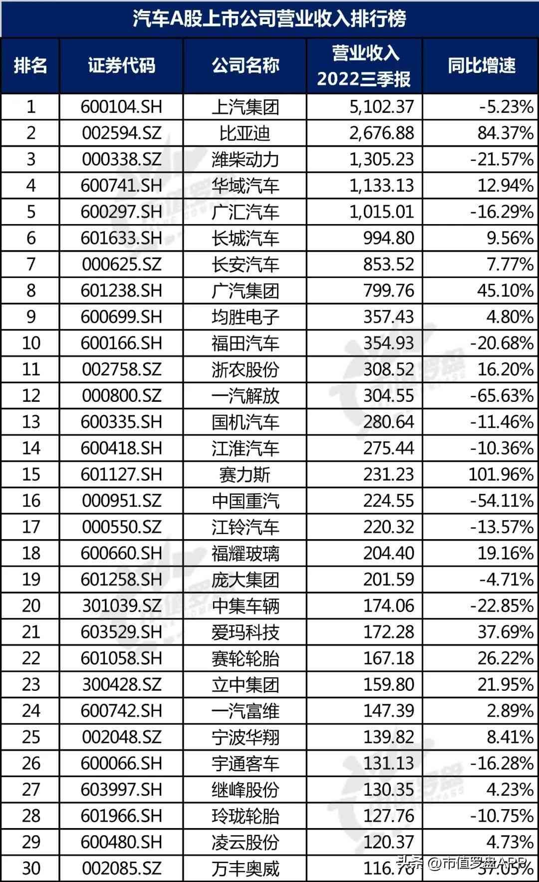 汽车行业股票排前十名,中国A股汽车上市公司高质量发展排行榜!