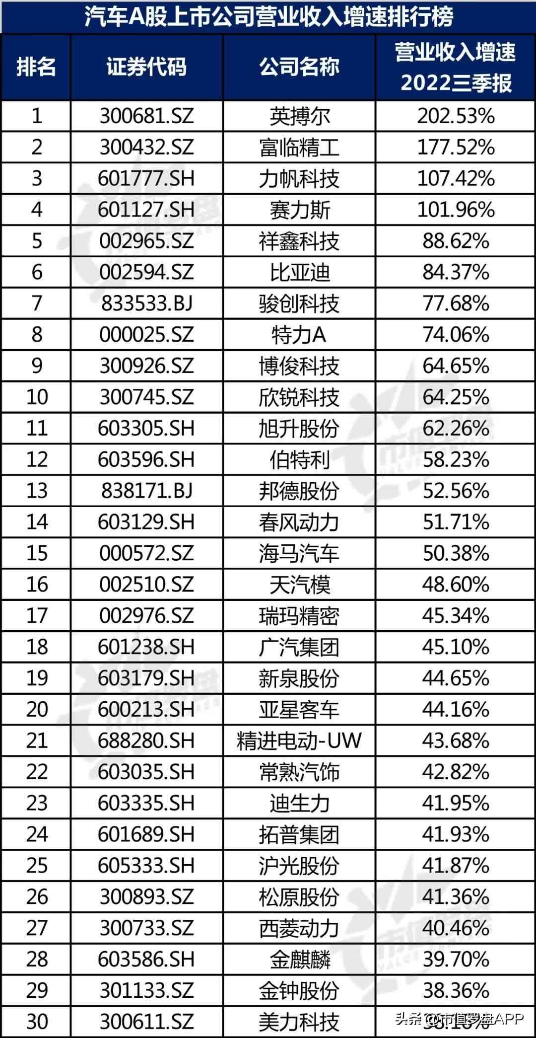 图6:汽车行业A股上市公司营业收入增速排行榜