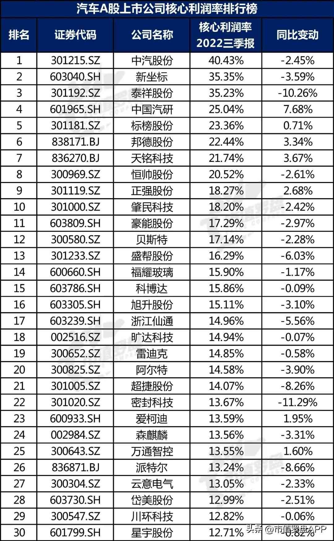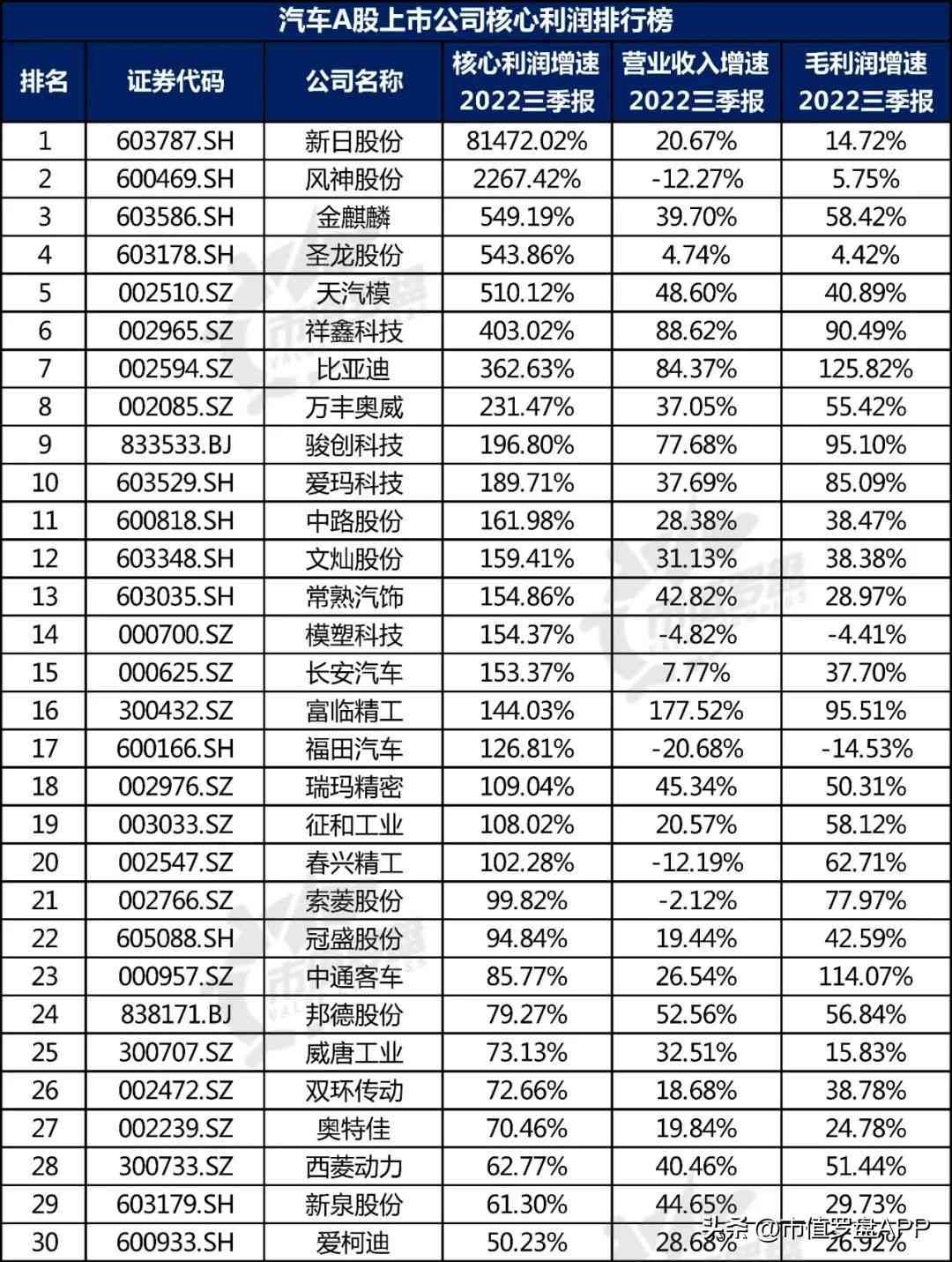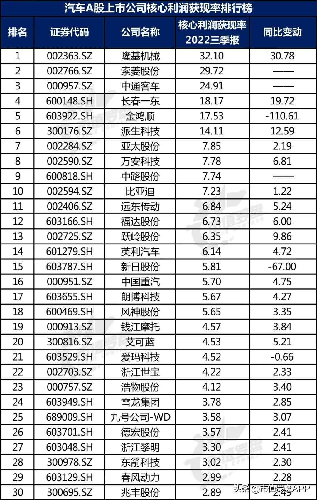 2022前三季汽车行业A股上市公司71家核心利润增长,110家核心利润出现下滑。