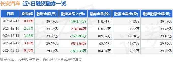长安汽车融资融券信息显示,融资方面,当日融资买入1.42亿元,融资偿还1.62亿元,融资净偿还1961.13万元。融券方面,融券卖出9.32万股,融券偿还2.0股,融券余量119.91万股,融券余额1661.96万元。融资融券余额39.25亿元。