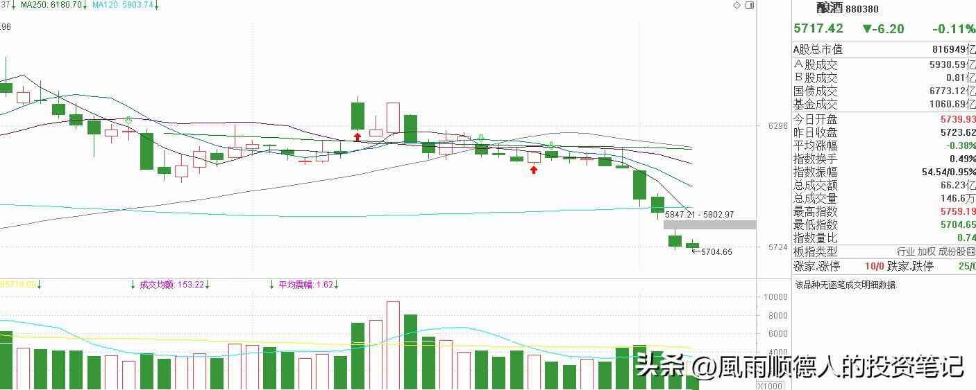 昨天的白酒板块就像是喝醉了的老酒鬼,低开低走,中阴调整,再加上前期的四连阴,这完全就是破位下行的“红灯信号”!今天,白酒板块虽然高开,但最终还是没能挺住,再次回落,阴线收盘,抛压重得就像是压在胸口的大石,让人喘不过气来。