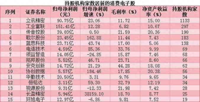 其中,立讯精密以1133家的持股机构家数位居行业第一,工业富联和传音控股分别以297家和190家的数量紧随其后,凸显了这些消费电子企业在资本市场上的吸引力。
